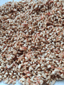 Für all diese Gerichte müssen die Hagebutten entweder für die weitere Verarbeitung entkernt werden oder sie werden im Ganzen gekocht und dann durch ein Sieb fein passiert, um sie von den Kernen zu befreien.